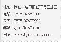 电话:0575-87659200 87630992 传真:0575-87630992 邮箱:zj.bjx@163.com 地址:浙江省诸暨市店口镇任家坞工业区